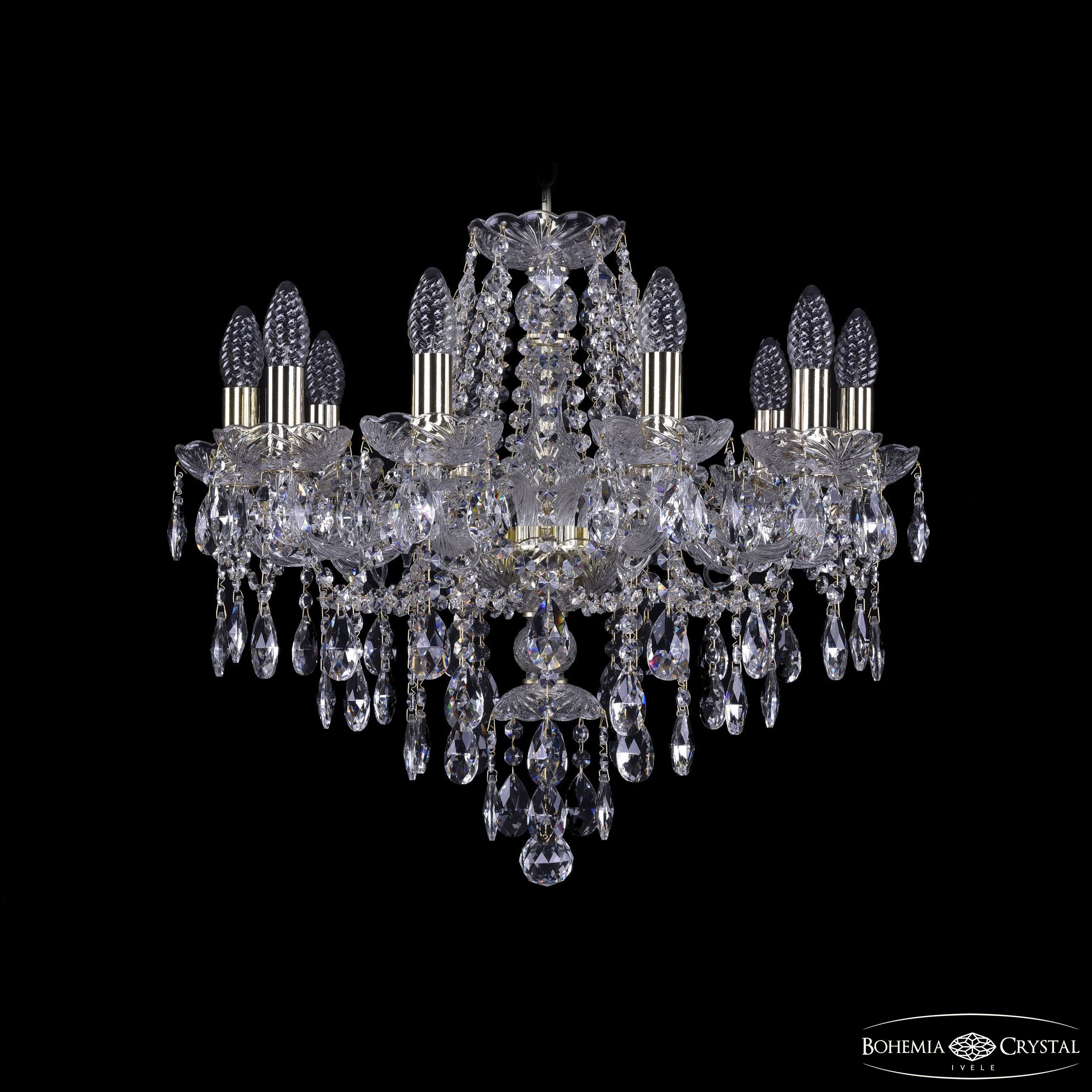 1415/10/200/G BOHEMIA IVELE CRYSTAL Чехия Рожковые люстры Диаметр 60 см, Высота 39см ,кол-во лампочек 10 шт, цвет золото ,Площадь освещения 22м ,Хрусталь прозрачный Можно выбрать стаканчик из металла или стекла (матовый белый).