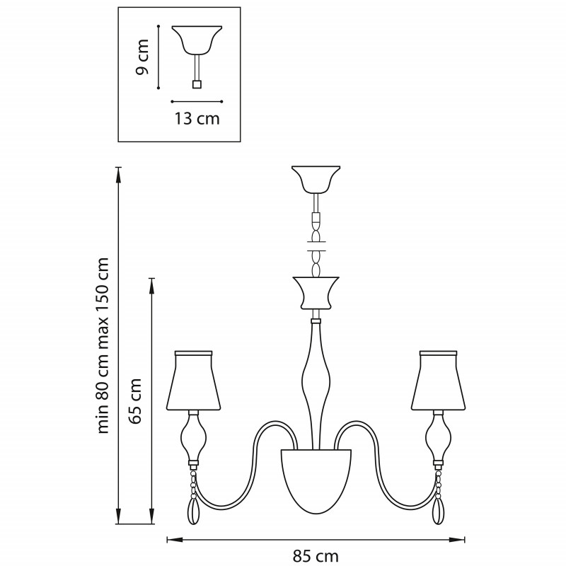 количество ламп - 9. мощность лампы - 40. высота - 800. ширина/диаметр - 850. степень защиты ip - 20. напряжение - 220. мощность общая - 360.