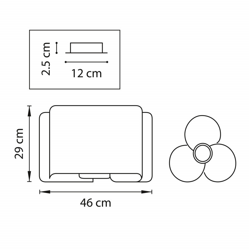 количество ламп - 3. мощность лампы - 40. высота - 290. ширина/диаметр - 460. мощность общая - 120.