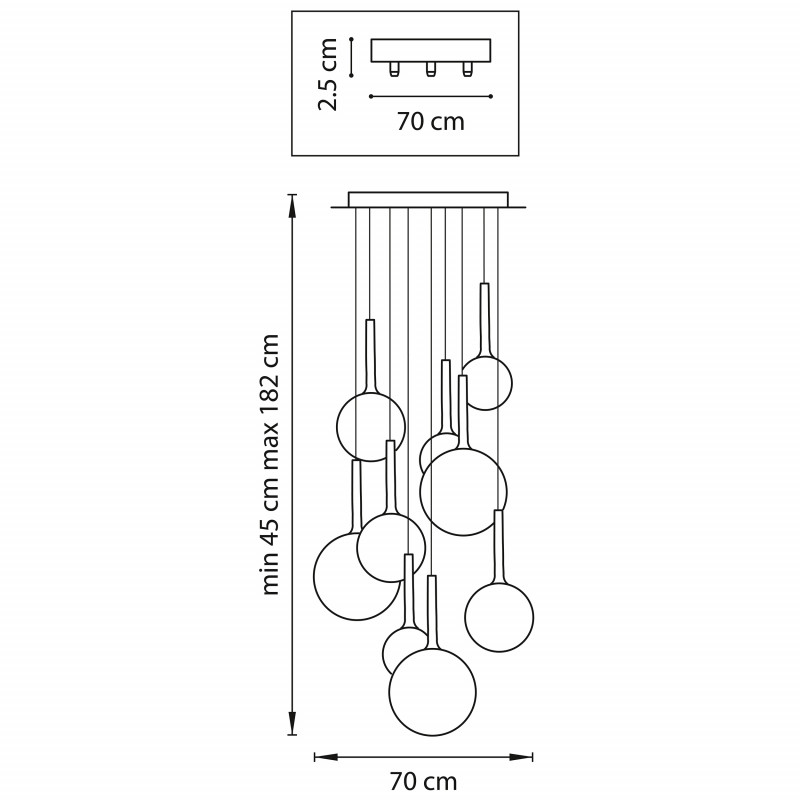 количество ламп - 9. мощность лампы - 40. высота - 1820. ширина/диаметр - 700. длина - 700. степень защиты ip - 20. напряжение - 220. мощность общая - 360.