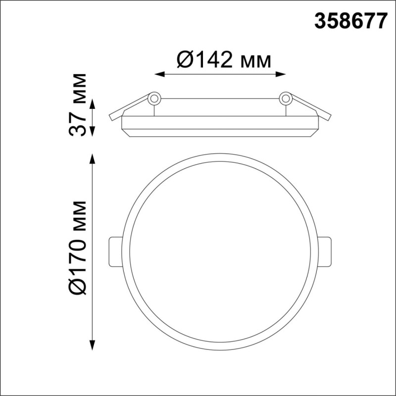 высота - 37. ширина/диаметр - 170. степень защиты ip - 54. монтажное отверстие (диаметр) - 142. напряжение - 220. мощность общая - 20.