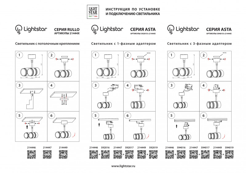 Трековое крепление ASTA с 1-фазным адаптером к 05101xIP65/21444x ЧЕРНЫЙ, шт Lightstar