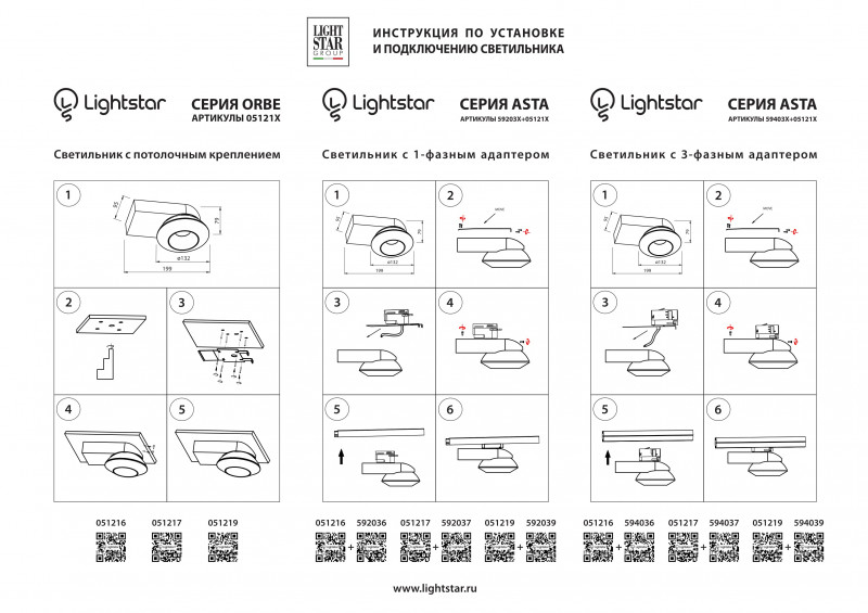 Трековое крепление ASTA с 1-фазным адаптером к 05121x ЧЕРНЫЙ, шт Lightstar